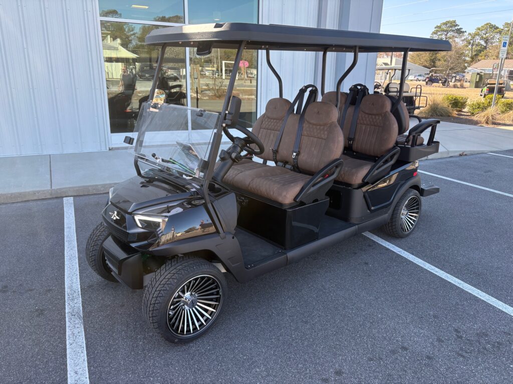 Are you ready to Escape the Everyday with the Atlas Golf Car? This Gen 2 Atlas Golf car comes with a lifetime powertrain warranty, 3-year cart warranty and a 10-year Lithium Ion Battery warranty. The Atlas has a built-in charger, rear flip seat and Bluetooth sound system. This Atlas Golf Car is a non-lifted model in body color Jet Black. This model has premium High back seats in Brown. Reach out today to learn more about the Atlas Golf Car!